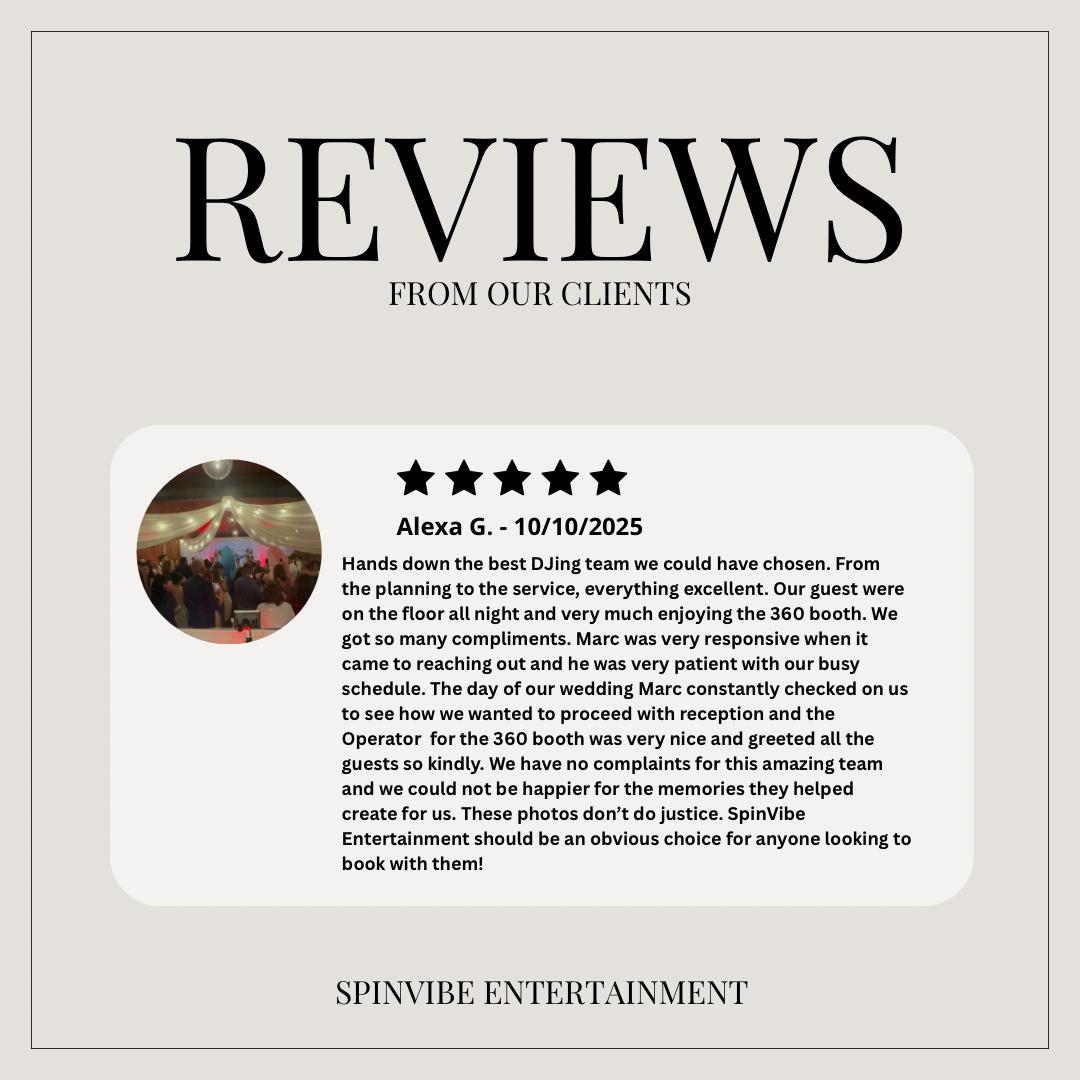 This is a sample of our reviews! we have many more and for each DJ that works with us. Our reviews and clients speak for us, and we guarantee to give you the best time!